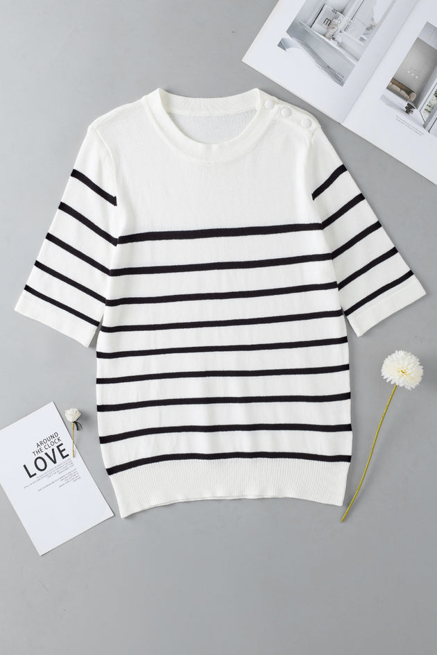 Striped Round Neck Half Sleeve Knit Top Regular price $33.99