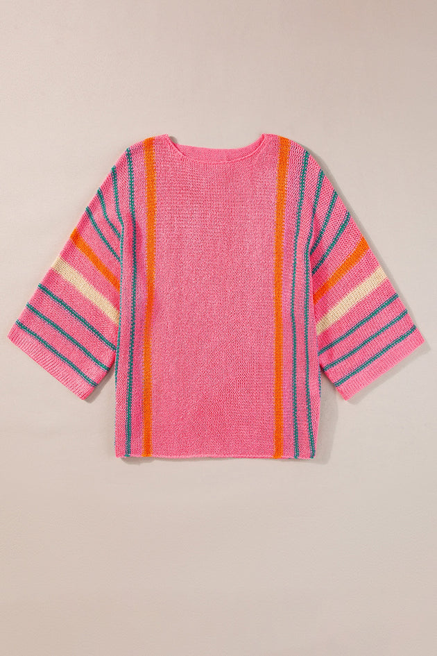 Striped Boat Neck Three-Quarter Sleeve Knit Top Regular price $33.99