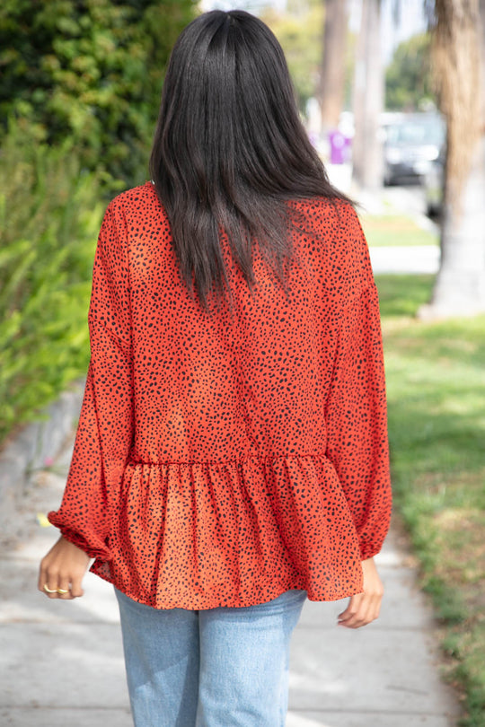 Sale                       Rust Leopard Wool Dobby Woven Knit Top Sale price $13.99Regular price $15.95Get instant color and festivity with this rust spotted Leopard print wool dobby woven top with a crepe-like feel and long bubble sleeves. Bubble Sleeves + Spotted Leopard Print 100% POLYESTER Made in USA Runs Large ...