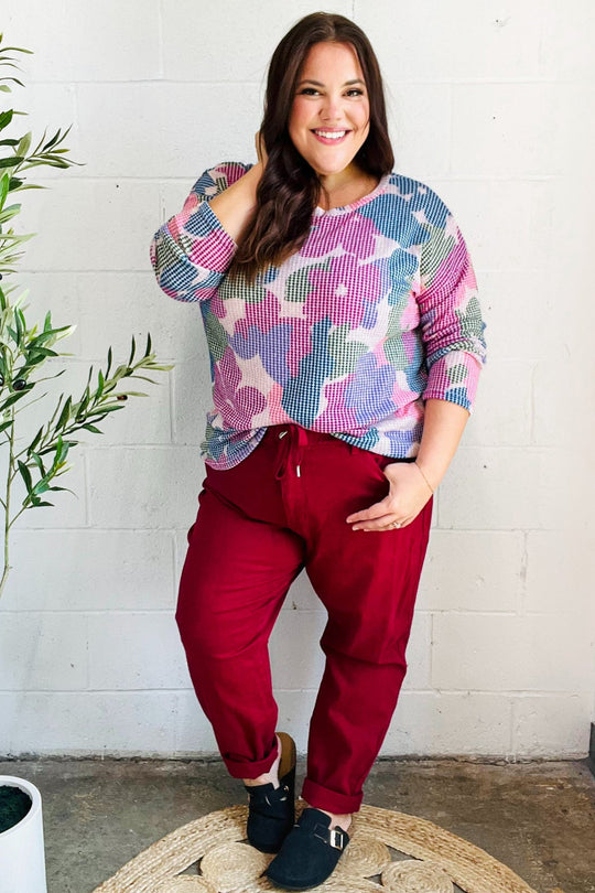 Spring Vibes Multicolor Floral Collar Notch Neck Waffle Knit Top Regular price $20.99Step into spring with this whimsical waffle knit top featuring multicolor big floral print, a notched collar neck and adorable pink contrast binding on Dolman short sleeves. This stunning top can be tucked in or tucked...