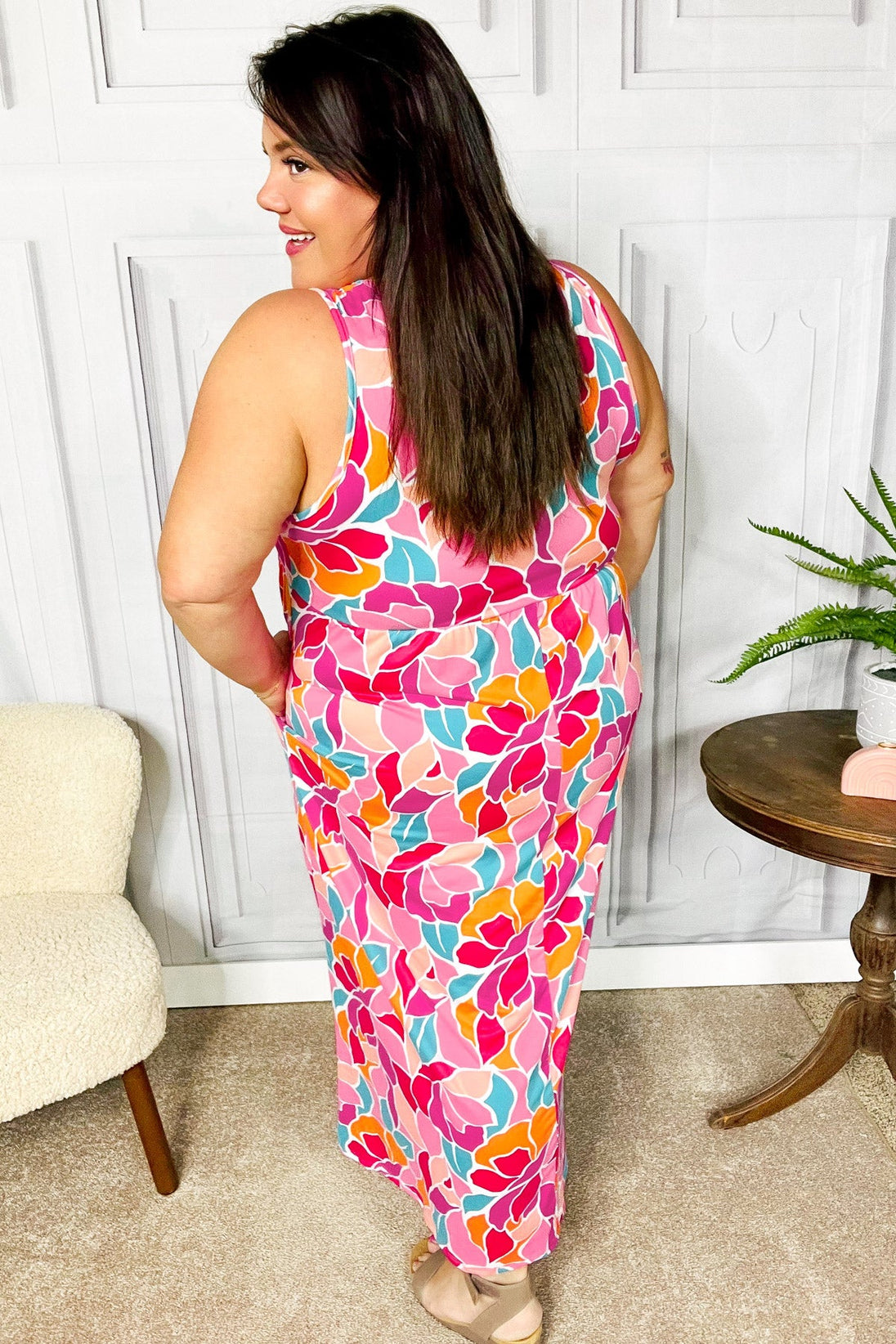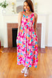 Step into spring with casual elegance with this abstract floral sleeveless tank top maxi dress designed with a round scoop neck, elastic waist and side pockets. With a silky, flattering drape, layer with a denim jacket or wear solo for a striking look.