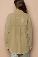 The Button Down Raw Hem Distressed Shacket is a versatile and edgy piece that combines the style of a shirt with the functionality of a jacket. The raw hem and distressed detailing give it a rugged and worn-in look for added character. With a button-down front, this shacket can be worn open as a lightweight layer or closed as a standalone top. The combination of a shirt and jacket makes it perfect for transitional weather and layering over your favorite outfits. Pair it with jeans and boots for a casual and on-trend ensemble. Elevate your streetwear style with this cool and fashion-forward distressed shacket.