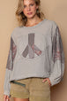 This Long Sleeve Cut Sew Peace Emblem Top is a cool and casual addition to your wardrobe. The cut sew detailing adds a unique touch to the top, giving it a stylish and modern look. The peace emblem adds a symbolic and trendy element to the design. With long sleeves, this top is perfect for layering or wearing on its own during cooler weather. The relaxed fit provides comfort and ease of movement for all-day wear. Make a statement with this chic and laid-back Long Sleeve Cut Sew Peace Emblem Top today!