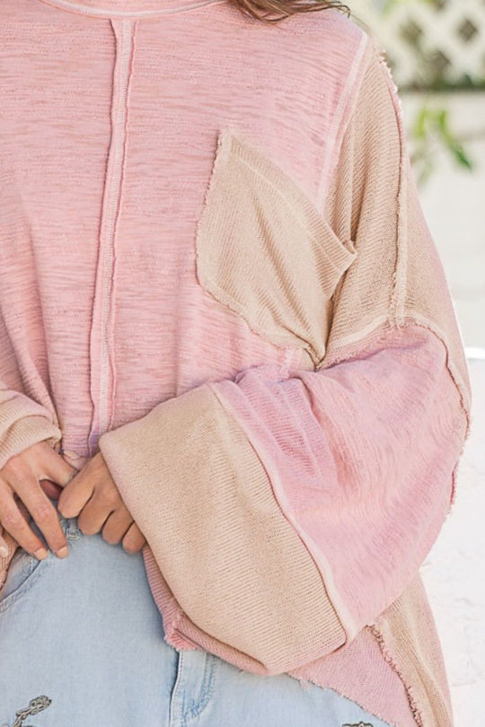 POL Round Neck Contrast Stitching High-Low Top