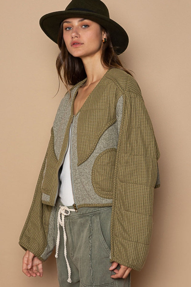 POL Quilted Knit Viding Detail Knit Patch Jacket Regular price $54.99