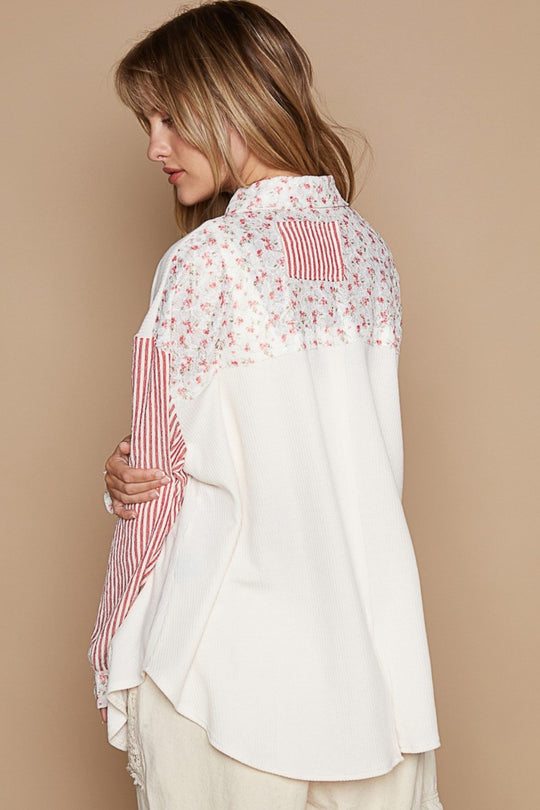 POL Long Sleeve Button Down Printed Shirt