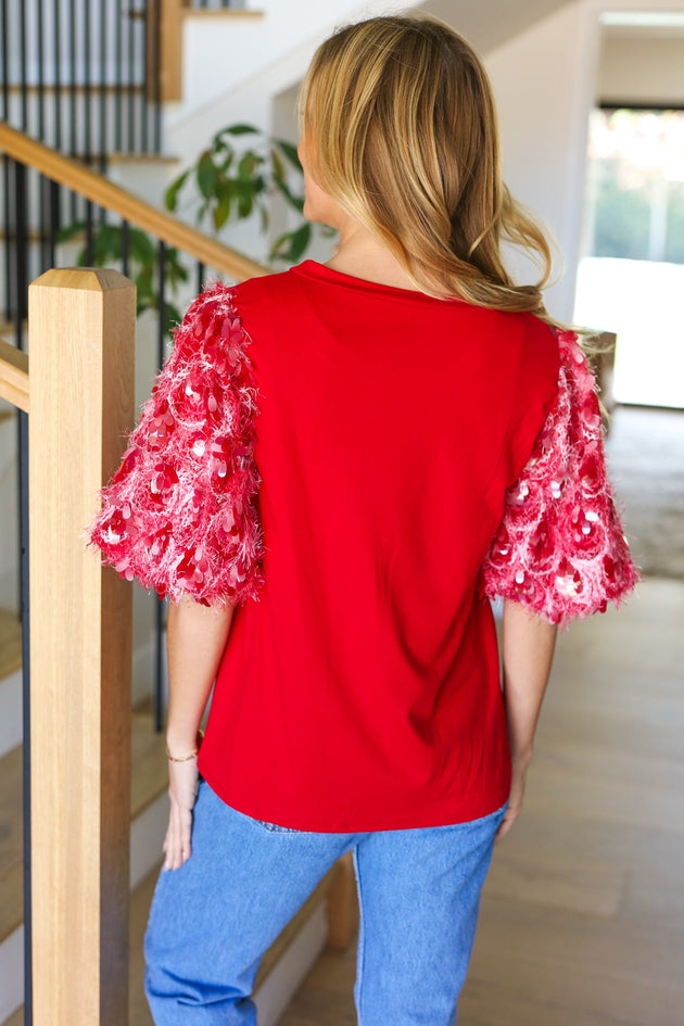 Sale                                         Come To Me Red Sequin Puff Short Sleeve Top Sale price $14.99Regular price $18.95