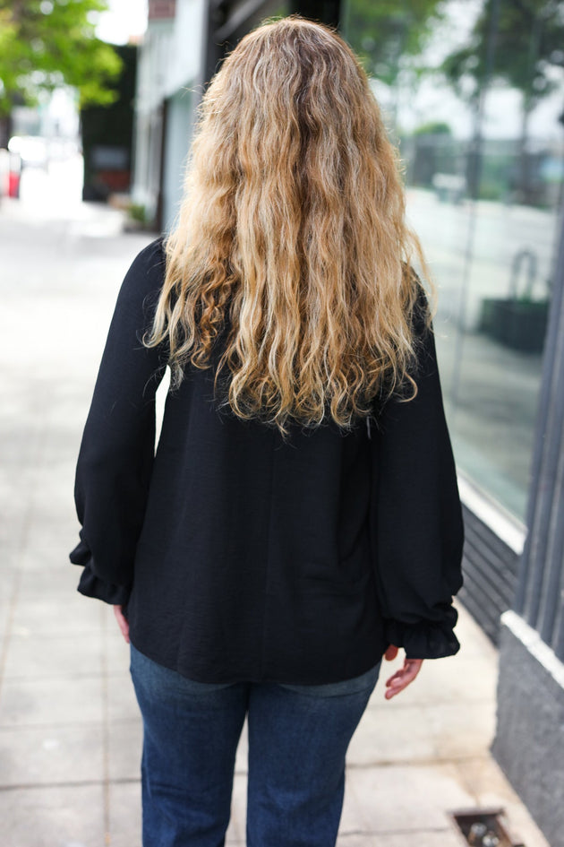 Sale                             Hello Beautiful Black Smocked Bubble Sleeve Woven Top Sale price $12.99Regular price $17.95