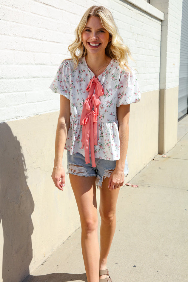 Feeling Femme Ivory Ribbon Bow Tie Folded Puff Sleeve Top Regular price $24.99