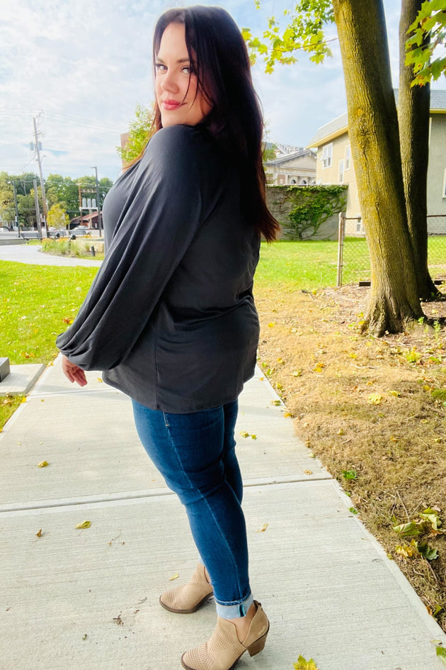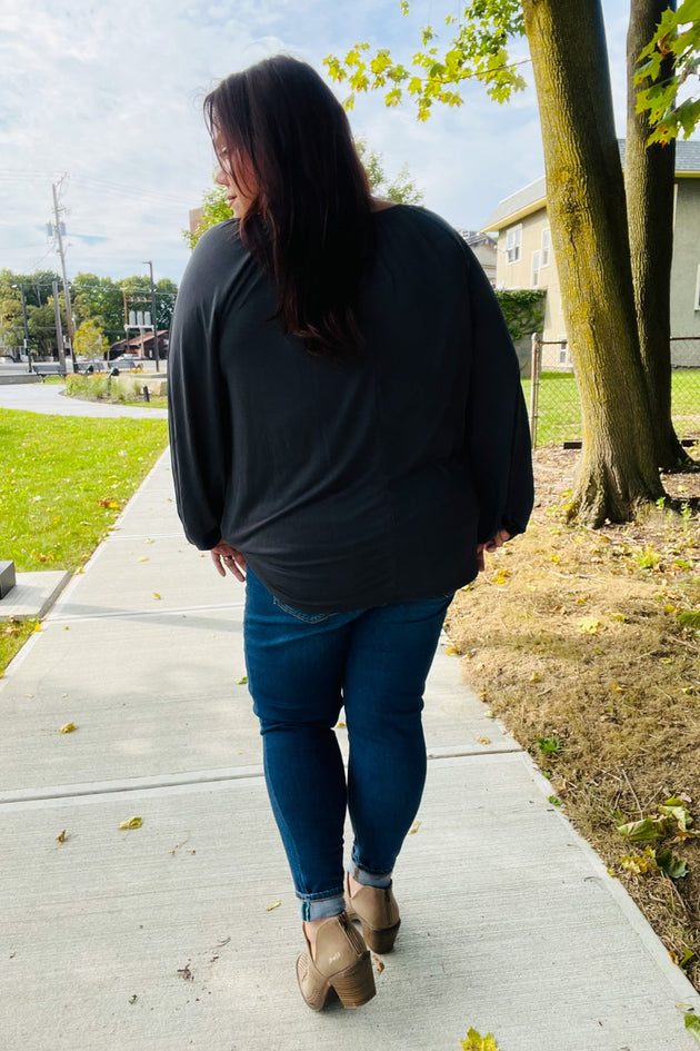 Sale               PLUS Stay Awhile Black Ribbed Dolman Cropped Sweater Sale price $10.99Regular price $17.95