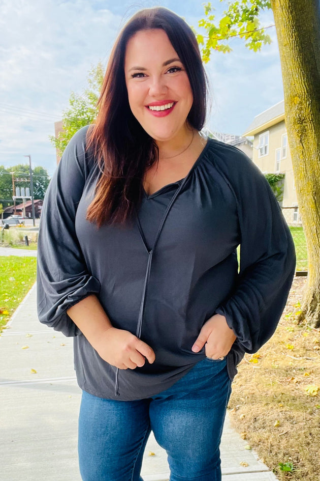 Sale                                                     Versatile Charcoal Front Tie Modal Knit Peasant Top Sale price $10.99Regular price $16.95
