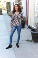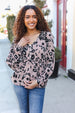 Ultra feminine and striking, this light-weight ribbed knit animal print pullover top is bod and fun. Designed with a button details, a roomy, dolman cut and banded long sleeves, be ready to catch glances with this top!