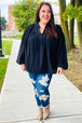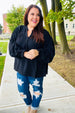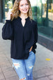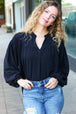 Add this stunning top to your casual closet while adding a touch of femininity with this smocked shoulder and bubble sleeve top in a crinkle woven fabric. A notch neck completes this versatile top.