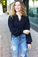 Feeling Femme Ivory Ribbon Bow Tie Folded Puff Sleeve Top