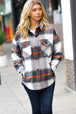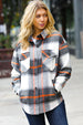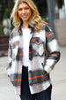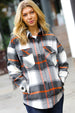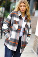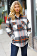 Touting a lumber jack-style, this mid-weight plaid shirt jacket is made with beautiful fall colors and features side pockets, front button flap pockets and long sleeves with button-clasped cuffs. A perfect layering piece for cooler weather.