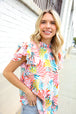 Refresh your casual closet while adding a touch of femininity with this double ruffle flutter sleeve woven top made with pulled Merrow stitching. A stunning frilled mock neck completes this versatile top made with stunning abstract print.