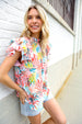 Eyes On You Ivory Abstract Print Frill Neck Double Flutter Sleeve Top