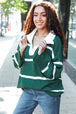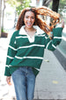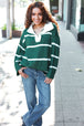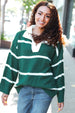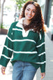 Featuring soft striped knit, a notched neck, wide collar and oversized fit, this sweater will add a trendy casual element to your fall and winter wardrobe.