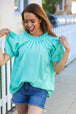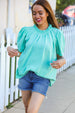 Capped puff sleeves, frill mock neck and beautiful button back define this woven top. Turn heads this spring season with this elegant top.