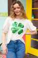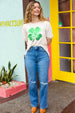 Stay lucky with this cream French terry top that features puff banded sleeves and a four-leaf clover sequin decal. The perfect St Paddy's Day top.