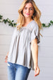 Bring on sandals and all-things-feminine with this lightweight knit blouse sporting beautiful crochet detail. Short flutter sleeves, a square neck and a stunning tie back complete this adorable look.