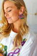 These light-weight soft polymer Mardi Gras dangle earrings adorned with sequins and beads will complement any look you have planned for Mardi Gras!
