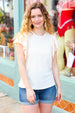 Feeling Femme Ivory Ribbon Bow Tie Folded Puff Sleeve Top