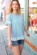 Turn up the volume when you wear this short sleeve top with a linen-like leopard print ruffle. A round neck, soft French terry and a floral color block design complete this stand-out top!