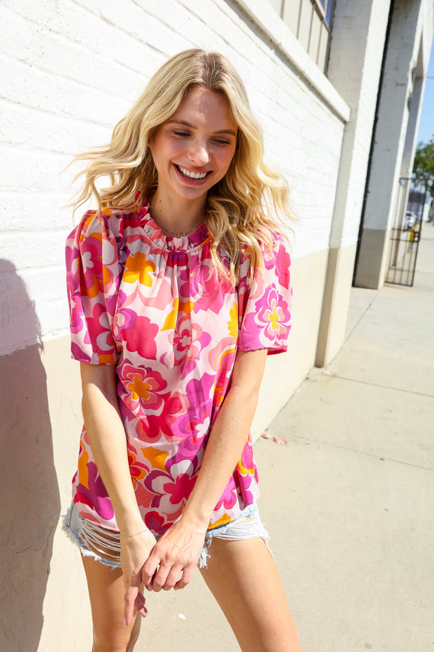 Perfectly You Fuchsia Big Floral Frill Neck Back Button Blouse Regular price $16.99