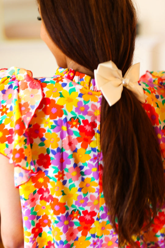 Flower Power Ivory & Red Floral Mock Neck Flutter Sleeve Top