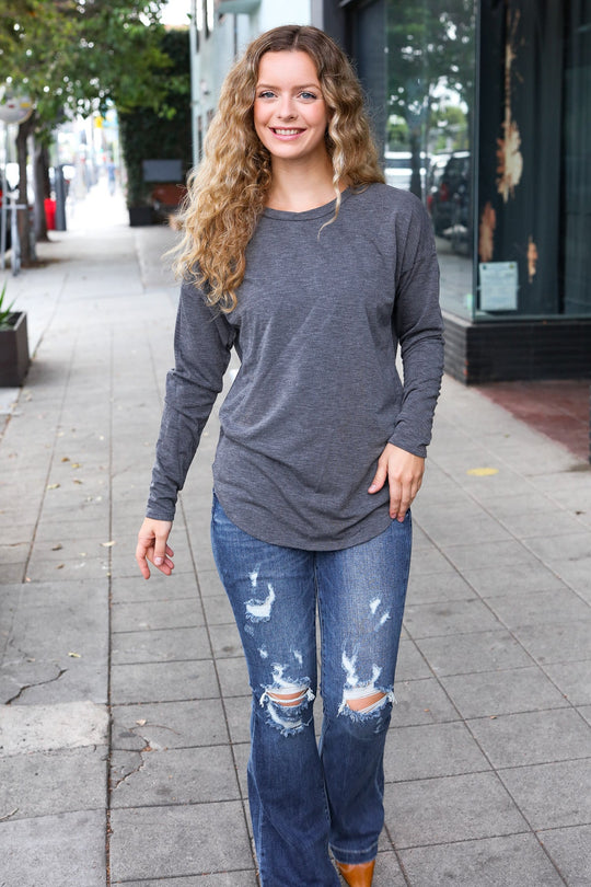 Sale price $9.99Regular price $16.95This classic solid grey round neck pullover is designed with fitted long sleeves and is a perfect early spring staple for your closet. Mix and match with all your bottoms. Solid Grey Knit + Fitted...