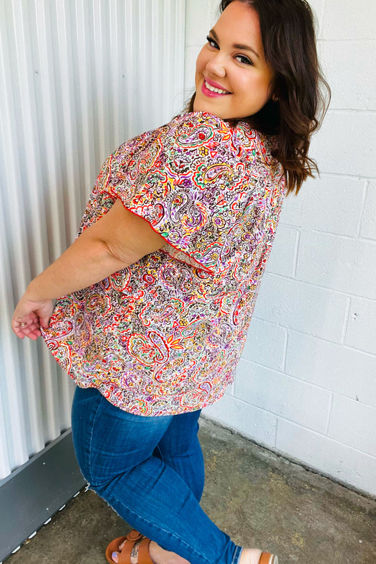 Make A Statement Fuchsia Paisley Boho Front Tie Top