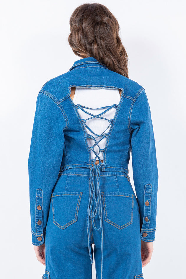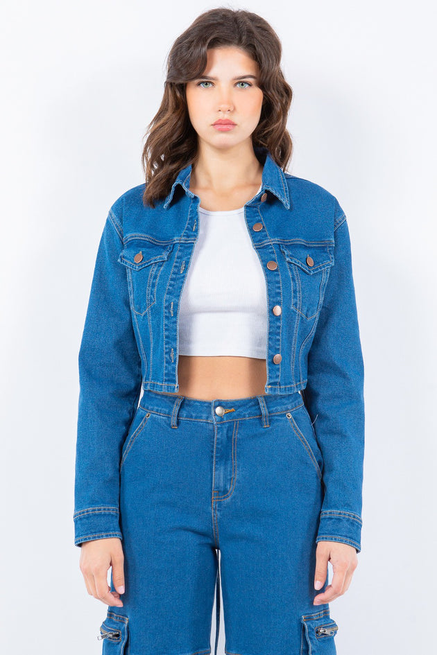 American Bazi Distressed Button Up Long Sleeve Denim Jacket