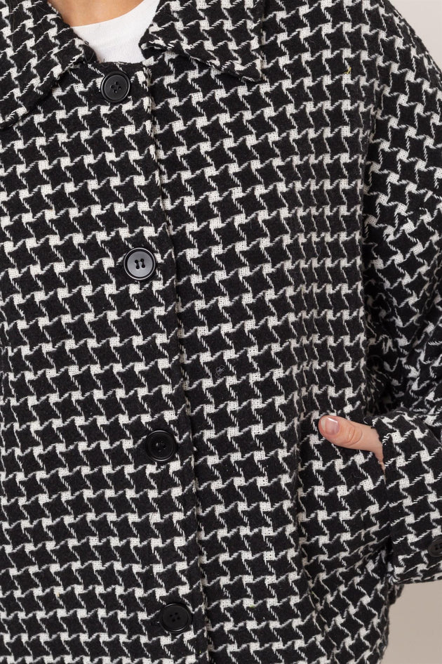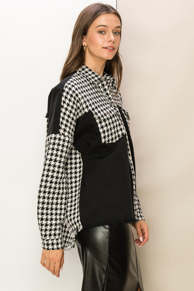 HYFVE Houndstooth Contrast Raw Hem Jacket