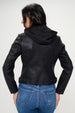 This zip-up hooded jacket is crafted from vegan leather for a stylish and sustainable option. The zip-up pocket adds a practical touch for storing essentials. The hood offers extra warmth and versatility for different weather conditions. Ideal for those seeking a chic and cruelty-free fashion statement. This jacket is a fashionable and functional addition to any wardrobe.