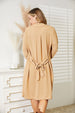 This tied trench coat with pockets exudes a sophisticated charm, perfect for adding flair to any outfit. It combines practicality with style, making it a versatile and must-have addition to any fashion-forward wardrobe.