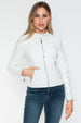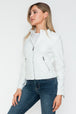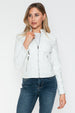 A PU leather zip-up jacket with pockets is a stylish and practical piece made from faux leather material. This type of jacket typically features a front zipper closure for easy wear, as well as functional pockets for storing small essentials. The PU leather material gives a sleek and fashionable look, while the zip-up design adds a modern touch. This jacket is versatile and can be worn in various settings, providing both style and functionality.