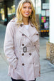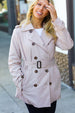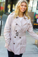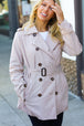 Double breasted styling assures a timeless look in this long sleeve fully lined trench coat with button shoulder notches and button-down functionality. A belt gives additional shaping to a classic silhouette with lapels and side pockets.