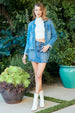 This Button Up Raw Hem Denim Jacket is the ultimate cool and edgy addition to your wardrobe. With its button-up design, you have the freedom to style it open or closed, adding versatility to your outfits. The raw hem detailing adds a rugged and vintage-inspired look, giving the jacket a touch of character. Made from high-quality denim, it is both durable and comfortable to wear. Whether you're layering it over a dress for a feminine twist or pairing it with jeans for a casual, laid-back vibe, this denim jacket is sure to elevate any outfit. Make a statement with this button-up raw hem denim jacket and embrace your inner fashionista.