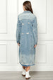 The Distressed Raw Hem Pearl Detail Button Up Jacket is a unique and fashionable addition to your wardrobe. The distressed detailing adds a trendy and edgy vibe to the jacket, while the pearl embellishments bring an element of elegance and femininity. The button-up front allows for versatile styling options and the raw hem adds a modern touch. Pair it with jeans and a t-shirt for a casual yet chic look, or layer it over a dress for a more dressed up ensemble. This jacket is a statement piece that will elevate any outfit.