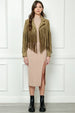 The suede fringe long sleeve moto jacket is the perfect combination of edgy and boho style. The suede fabric gives it a luxurious and texture-rich look, while the fringe details add a playful and free-spirited touch. This jacket is perfect for adding a statement piece to any outfit, whether you're going for a casual or dressed-up look. The moto-inspired design adds a cool and rebellious vibe, making it a standout piece in your wardrobe. With its long sleeves, it is perfect for transitional weather or adding a layer of warmth during chilly evenings. Stand out in style with this unique and eye-catching jacket.
