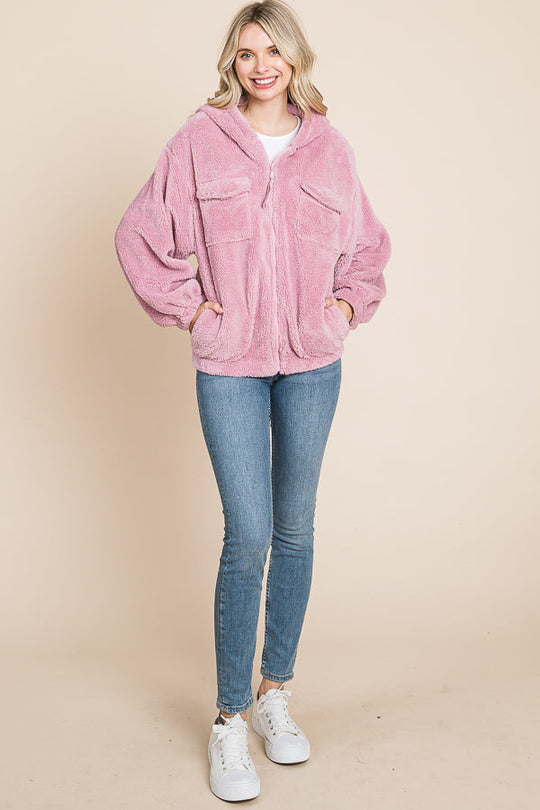 Culture Code Faux Fur Zip Up Hooded Jacket with Side Pockets