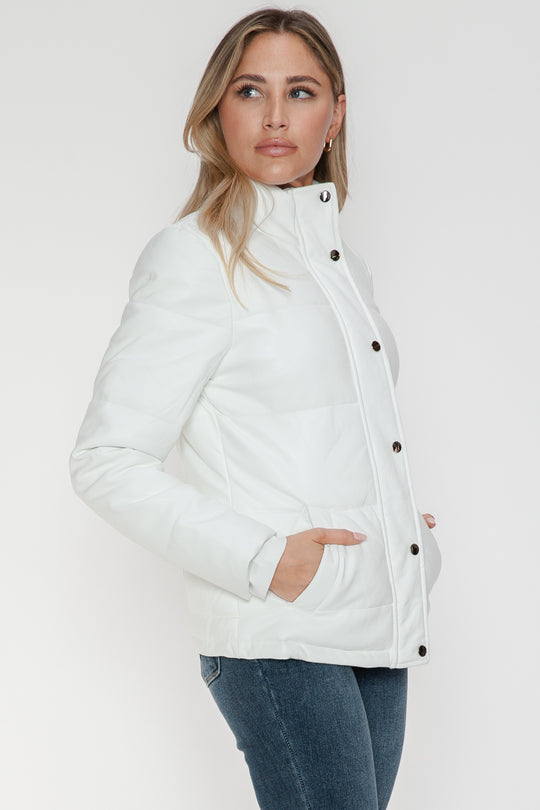 Love Me Now PU Leather Contrast Snap Down Bomber Jacket