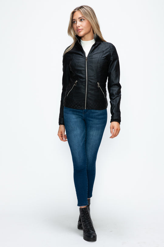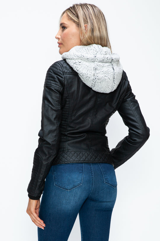 YMI Faux Layered Double-Zipper Jacket with Fuzzy Hood