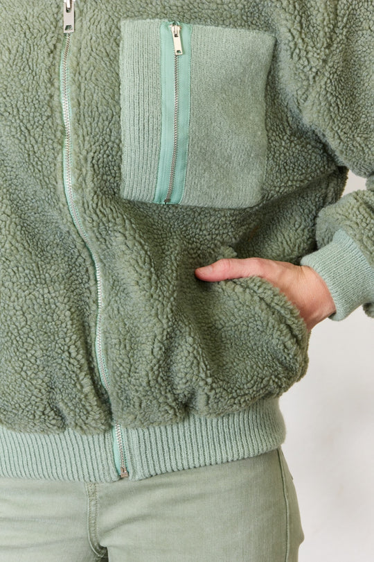 Regular price $41.99This cozy and chic jacket is a must-have for the colder months, featuring a soft and luxurious sherpa fabric that will keep you warm and stylish. The front zipper closure provides easy wear, while the collar... -