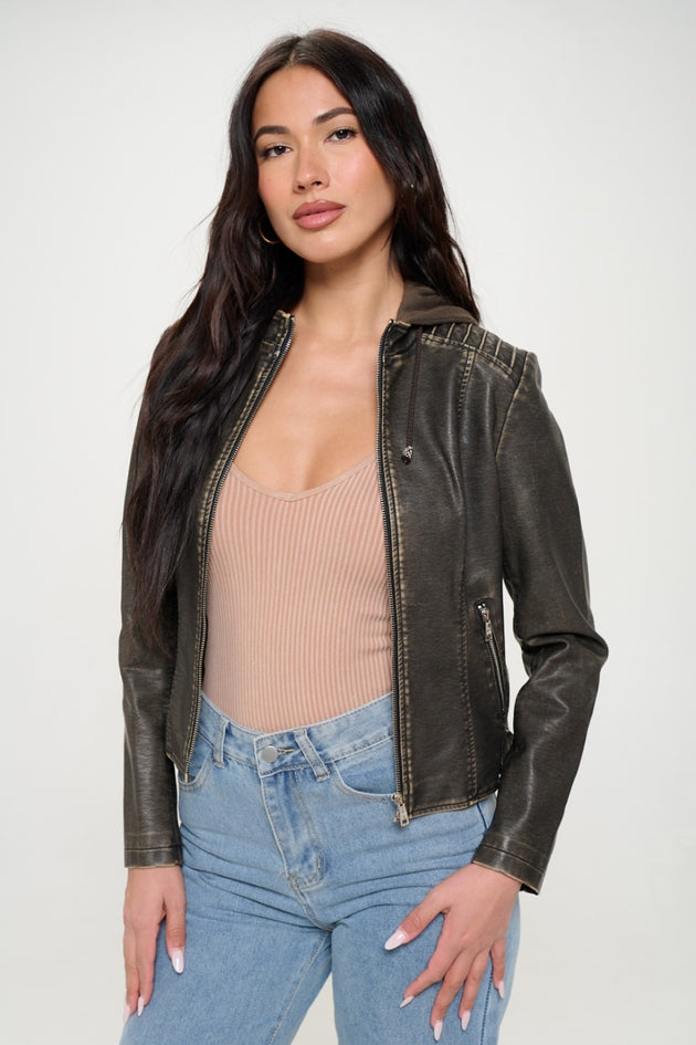 Snobbish PU Leather Biker Jacket with Side Zip Pockets Regular price $34.99