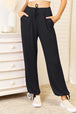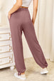 These drawstring waist pants are both comfortable and stylish. Designed with convenient pockets, they offer a practical and versatile option for everyday wear or lounging around.