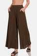 The Woven Wide Leg Pants with Pockets are a versatile and stylish addition to your wardrobe. Featuring a wide-leg silhouette, these pants offer a flattering and flowy fit that is perfect for any occasion. The addition of pockets provides both functionality and convenience, allowing you to carry small essentials with ease. Whether you dress them up with heels and a blouse or keep them casual with a simple tee, these pants are a chic and effortless choice. Made from woven fabric, they drape beautifully and offer a polished look. Elevate your outfit with the sophistication and comfort of the Woven Wide Leg Pants with Pockets for a fashion-forward statement.