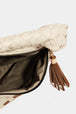 This hand bag features a fashionable faux leather basket weave semi circle bag style. Celebrate individual style with this versatile, eye-catching addition.