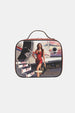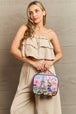 The printed handbag is a stylish and functional accessory. Made from pebbled and glossy patent leather, this handbag includes three pouches for storing makeup and essentials. It's a versatile and fashionable addition to your collection.